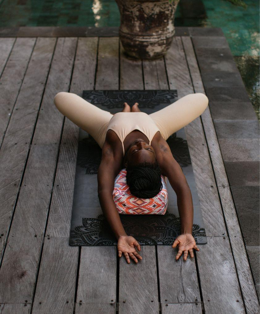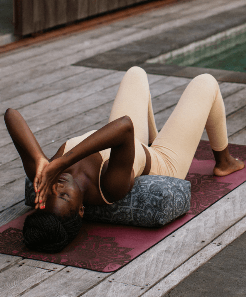 - Place the Yoga Bolster in the desired position to support your yoga practice, such as under the knees, hips, or back.