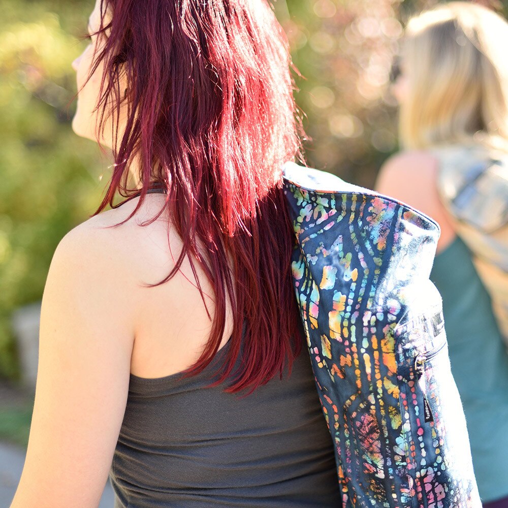 Free your hands and slip this unique & colorful carrier over your shoulder! Fits most yoga mats.